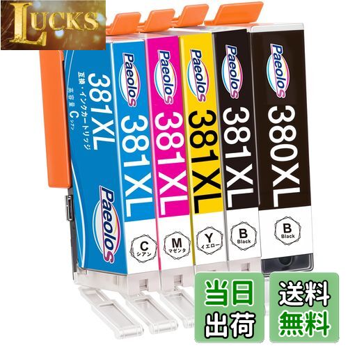 【送料無料】Canon用 BCI-380XL381XL 5本セット BCI-380XL BCI-381XL 互換インクカートリッジ キャノン 380互換インク 381互換インク TS6130 TS6230 TS6330 TS7330 TR9530 TR8530 TR7530 TR703 TS8130 TS8230 TS8330 TS7430 TR8630 大容量 個別包装 残量表示付 Paeolos