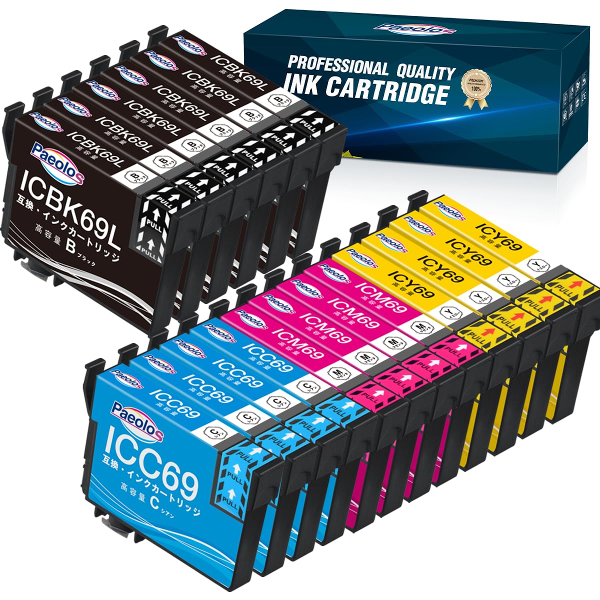 商品情報商品の説明主な仕様 ★【セット内容】互換インクカートリッジIC4CL69(6BK+4C+4M+4Y)18本セット(4色セット*4+黒2本) 個別包装で長期保存に適しています インク漏れや破損などの不具合を最小限に抑えます。★【適用機種】Epson エプソン PX-437A PX-436A PX-435A PX-405A PX-047A PX-046A PX-045A PX-105 PX-505F PX-535F ※説明書付きなので インクカートリッジをご使用になる前に 必ず説明書をご確認ください。基本的な使用方法やよくあるご質問の対処方法が記載されてます。また不明点があれば出品者にご連絡ください。★【製品特徴】本製品IC4CL69(18本セット)は最新型ICチップ対応してインクの残量表示でき、純正インクと併用も可能です。長期保管用の個別包装で、製品表面の破損、インク漏れ、ICチップにこすることなど不具合の問題も最大限避けます。※こちらは純正品ではありません。純正品と同様に使用可能な互換インクカートリッジです。★【日常印刷に適用】Paeolos IC4CL69 インクカートリッジは低コストでプリンター本体の性能を十分に発揮できる経済的な商品を提供しております。お客様にご満足いただきプリントパフォーマンスは 日常印刷に適用です。★【綺麗な印刷】耐久性 耐光性 着色力に優れ 発色が鮮やかなインクを採用しております。文字はもちろん 写真もキレイに印刷できます。★【品質保障】厳格な生産管理、高品質の原材料使用し、発色が鮮やかな染料インクを採用し、低コストでプリンター本体の性能を十分に発揮できる高品質で経済的な商品のみを提供していきます。文字はくっきり、高品質や綺麗なカラーが鮮やかに印刷できます。★【安心のサポート】国際規格ISO14001 ISO9001 CE SGSなどの認証取得済みの工場で製造しております。アメリカ イギリス フランス スペイン ドイツ ロシアなど世界40カ国以上のお客様に製品を提供しております。品質と安定性に自信を持っておりますので 不具合がある場合は ぜひ出品者までご連絡をお願い申し上げます。