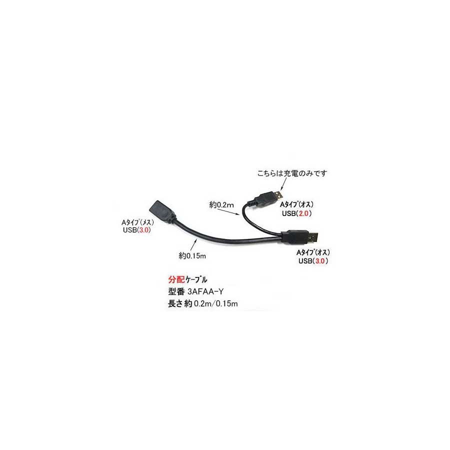USB3.0分配ケーブル(タイプA/オス)→(タイプA/メス)+タイプA(オス/充電専用)/20cm+15cm(UC-3AFAA-Y)
