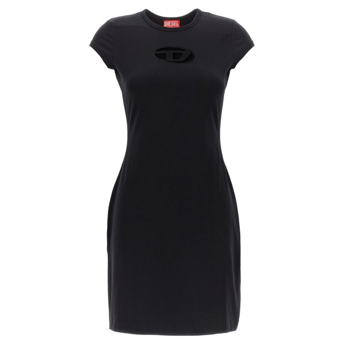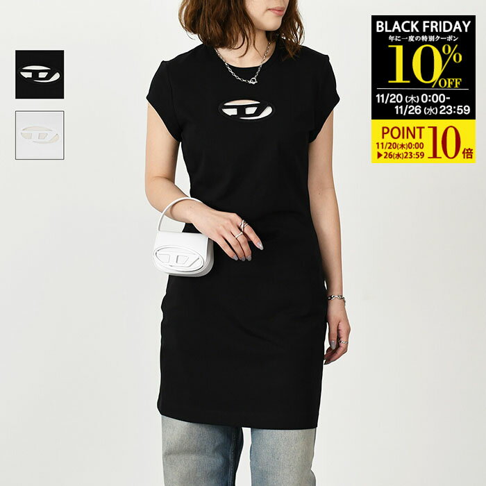【11/25限定!ポイント8倍】 ディーゼル DIESEL レディース ワンピース D ANGIEL A06270 0AFAA ブラック 9XXA 半袖 カットソー クルーネック オーバルDロゴ キャップスリーブ ドレス スリムフィット ミニ丈 カットアウト ストレッチ 【プレミアムSTOCK-25SS】