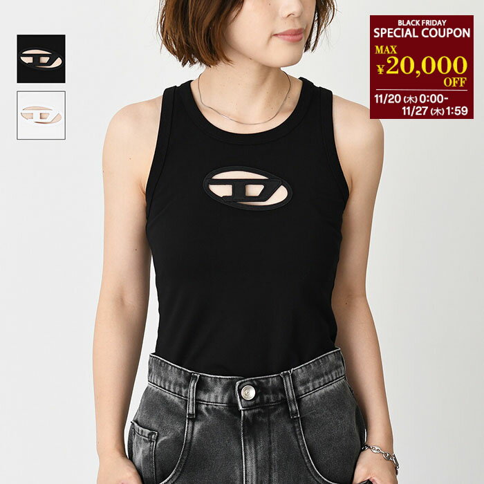 【限定クーポン配布中】DIESEL ディーゼル トップス T-LYNYS-OD タンクトップ A15703 0AFAA レディース ホワイト ブラック コットン ロゴ スリムフィット 春 夏_d sstmcp