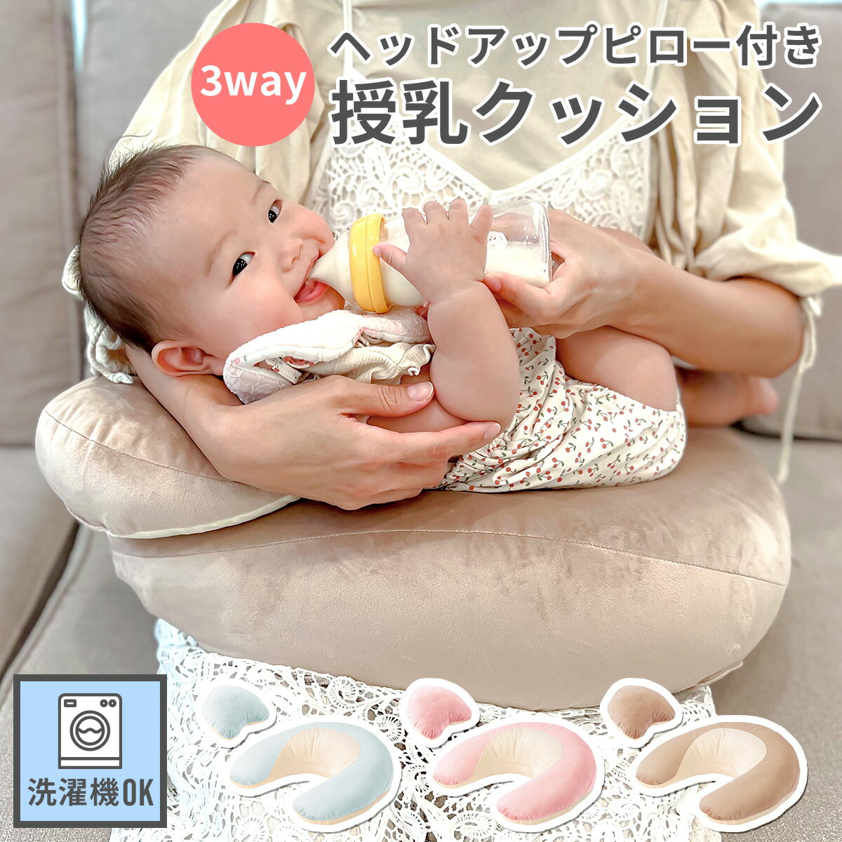 妊娠中から大活躍!3wayクッション プレミアム☆ 妊娠中のママから生まれてきた赤ちゃんまで長くお使いいただける、3wayクッション!妊娠中は腰痛軽減として腰のカーブにフィットさせて座ったり、クッションをお腹にあてて座ったり、足のむくみをとるために足まくらとして使ったりできます!そして、産後は授乳クッションに!赤ちゃんの頭を支える腕への負担をやわらげます!!ヘッドアップピローで頭の部分に高さがあることで、赤ちゃんもおっぱいや哺乳瓶が飲みやすく、吐き戻しをしにくい姿勢になります。また、赤ちゃんの腰がすわってきたら、おすわりサポートとしておすわり時の転倒を防ぎます!!カバーは洗濯OKなので、いつでも清潔です♪ ご注意事項 ・写真の色調はご使用のモニターの機種や設定により、実際の商品と異なる場合があります。・入荷時期や製造時期により、色味のバラつきや個体差が生じる場合があります。 製品仕様 サイズ H430×W520×D180mm(ヘッドアップピローを含まず) 重量 880g(本体:780g、ヘッドアップピロー:100g) 素材 本体カバー:ソフトマイクロパイル(ポリエステル100%)、ヘッドアップピロー:ソフトマイクロパイル(ポリエステル100%)、中綿:ポリエステル100%本体中身:生地(ポリエステル100%)、中綿(ポリエステル100%) 洗濯 洗濯機可※必ず洗濯機の弱水流モード等で、洗濯ネットを使用して洗濯してください。乾燥機の使用はできません。※本体の中身は洗濯できません。 #A001 #A002 #A003 #A004 #A005 #A006-1 #A008