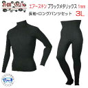 大きい3Lサイズ 1mm スキンゴム生地 【ブラックメタリックス】 長袖+ロングパンツ セット エアースキン AIR SKIN 日本製 上下セット 長袖 ロングパンツ 保温 ウエットスーツ用インナー BIARMS 3L