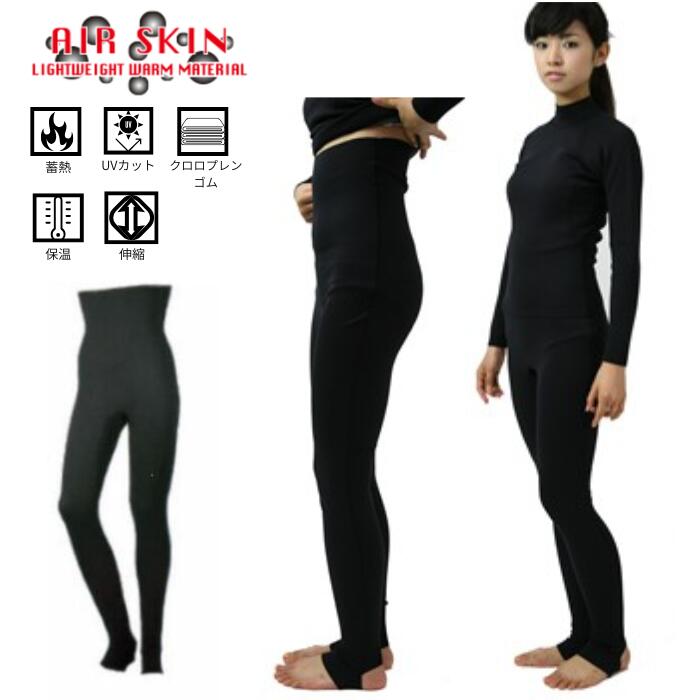 あす楽対応 1mmスキンゴム生地 【ブラックメタリックス】 ロングパンツ エアースキン AIR SKIN 日本製 ダイビング サーフィン 保温 ウエットスーツ用インナー お腹からの冷えを防ぐ腹巻き状で暖かさNo.1