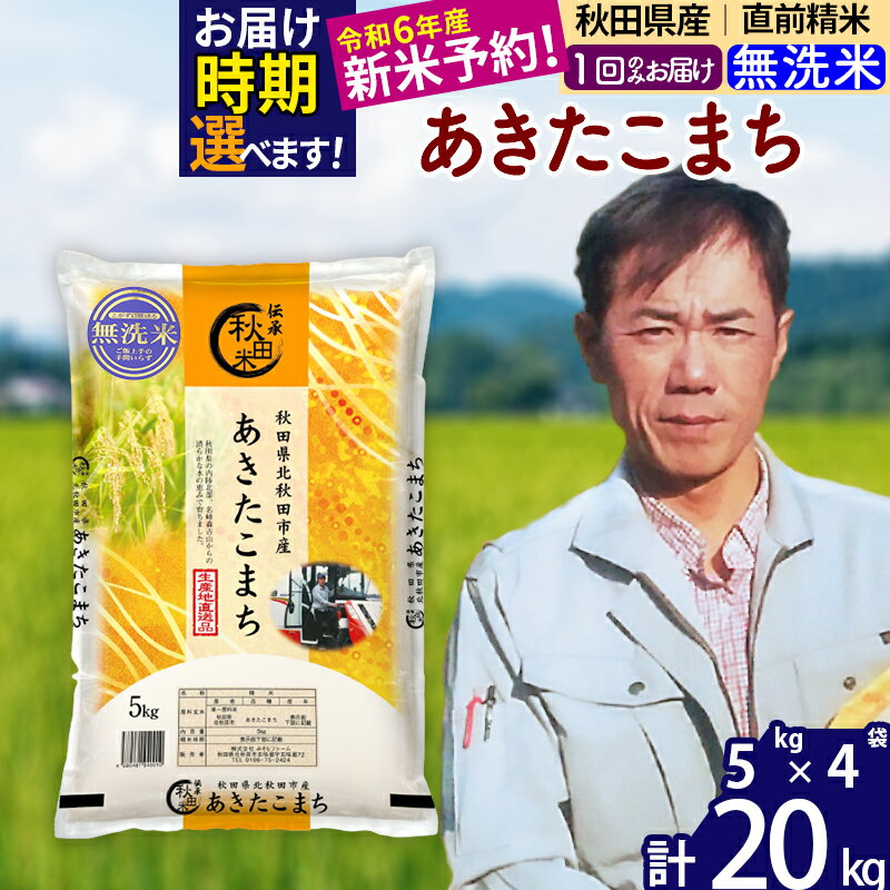 【ふるさと納税】※令和7年産 新米※秋田県産 あきたこまち 20kg【無洗米】(5kg小分け袋)【1回のみお届け】2025年産 お届け時期選べる お米 みそらファーム