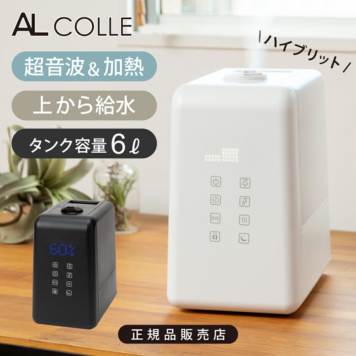 [ブラックフライデー SALE][在庫処分]ALCOLLE アルコレ ハイブリッド加湿器 ASH-6042 ホワイト ブラック 加湿器 送料無料 スチーム&超音波式 6リットル 6L 大容量 除菌 アロマ 卓上 上部給水 上から吸水 オフィス 加湿機 ハイブリット式 リモコン 【在庫処分・在庫限り】