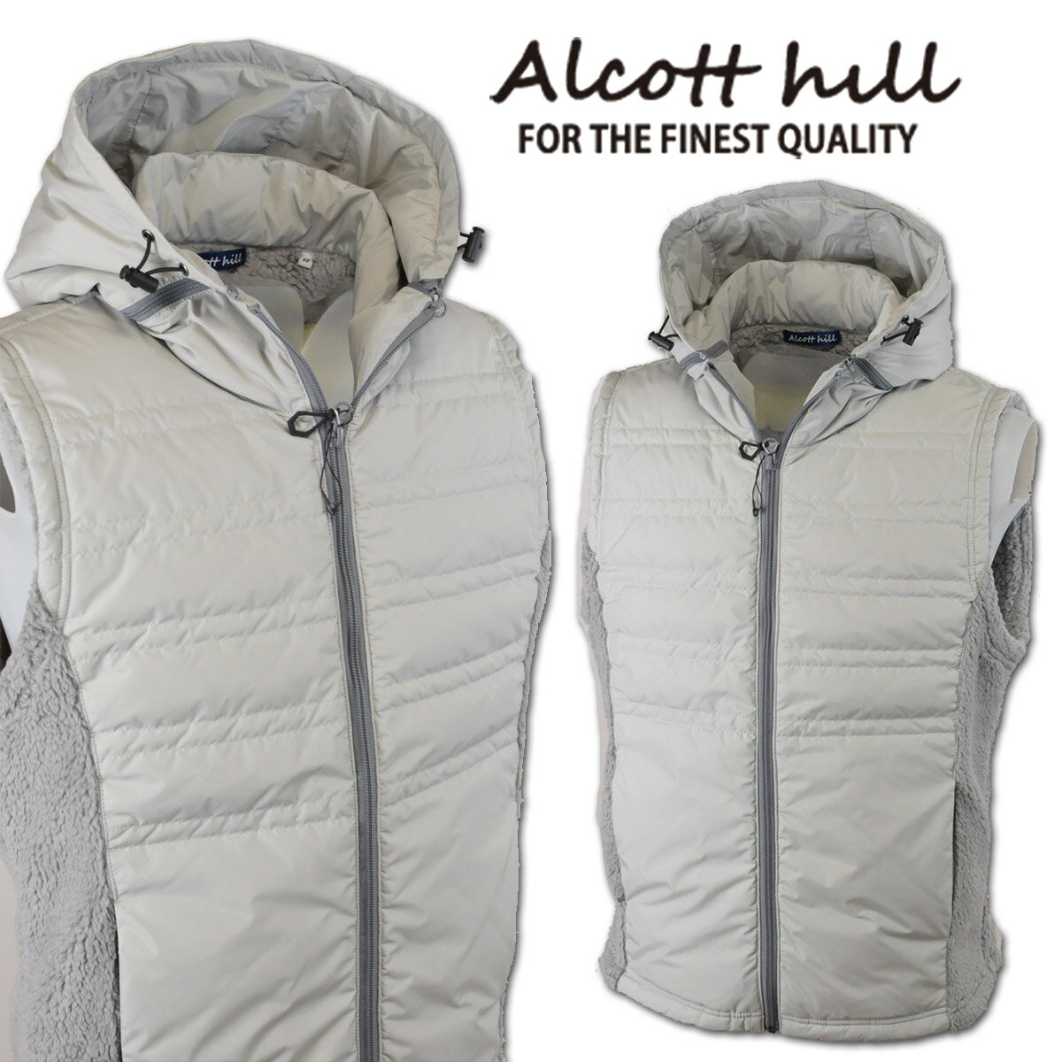 セール 60%OFF ALCOTT HILL アルコットヒル ベスト メンズ 秋冬 ボアベスト ボア もこもこ フードベスト パーカー ロゴ 15-3503-10
