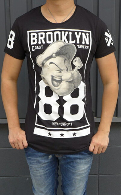 代引き不可!日付時間指定不可!ALCOTT(アルコット)メンズ 半袖 Tシャツ2017SS春夏新作ポパイ(Popeye)半袖カットソーALCOTT-TS10182UO【ブラック】【メール便送料無料!】