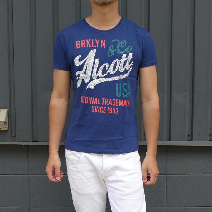 代引き不可!日付時間指定不可!ALCOTT(アルコット)メンズ 半袖 Tシャツ2021SS春夏新作 半袖カットソーALCOTT-TS9953UO【ネイビー】【メール便送料無料!】