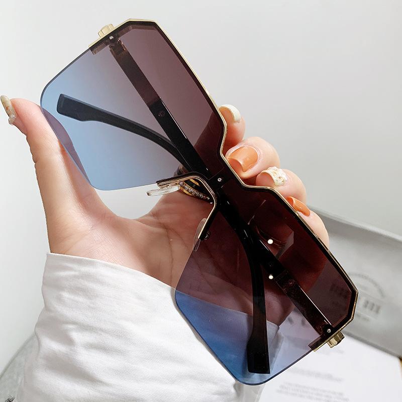 サングラス ビッグフレーム スクエア 一体型 ハーフリム メタルフレーム PCレンズ UV400カット グラデーションレンズ 欧米風 トレンド 個性的 高級感 ドライブ アウトドア 旅行 紫外線対策 ゴールド ブラウン グレー ブルー ピンク