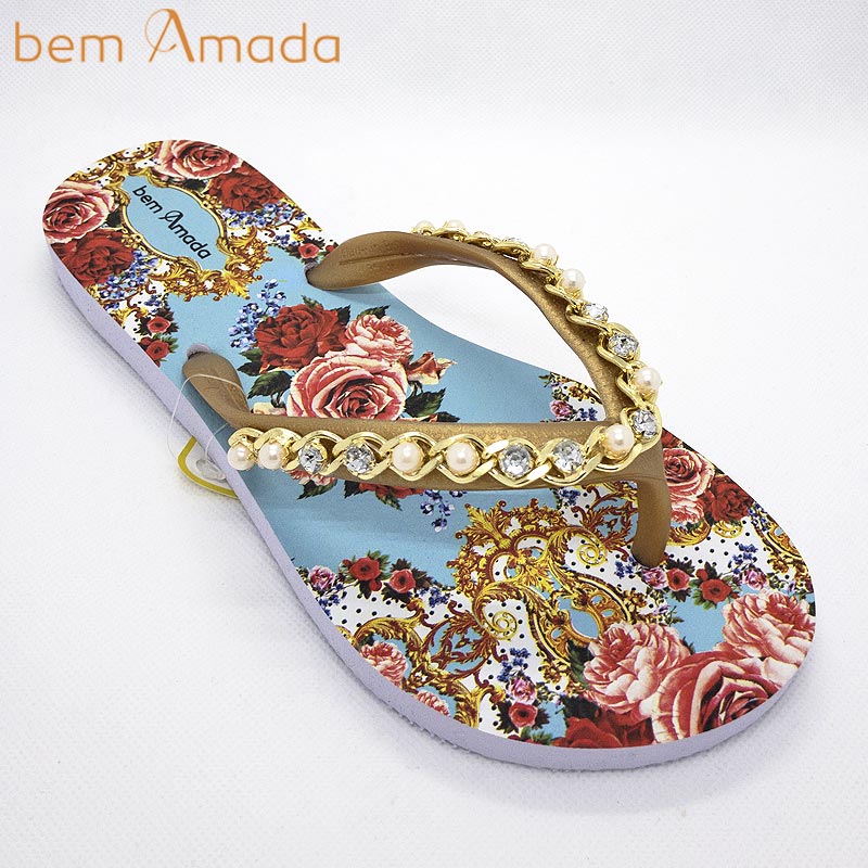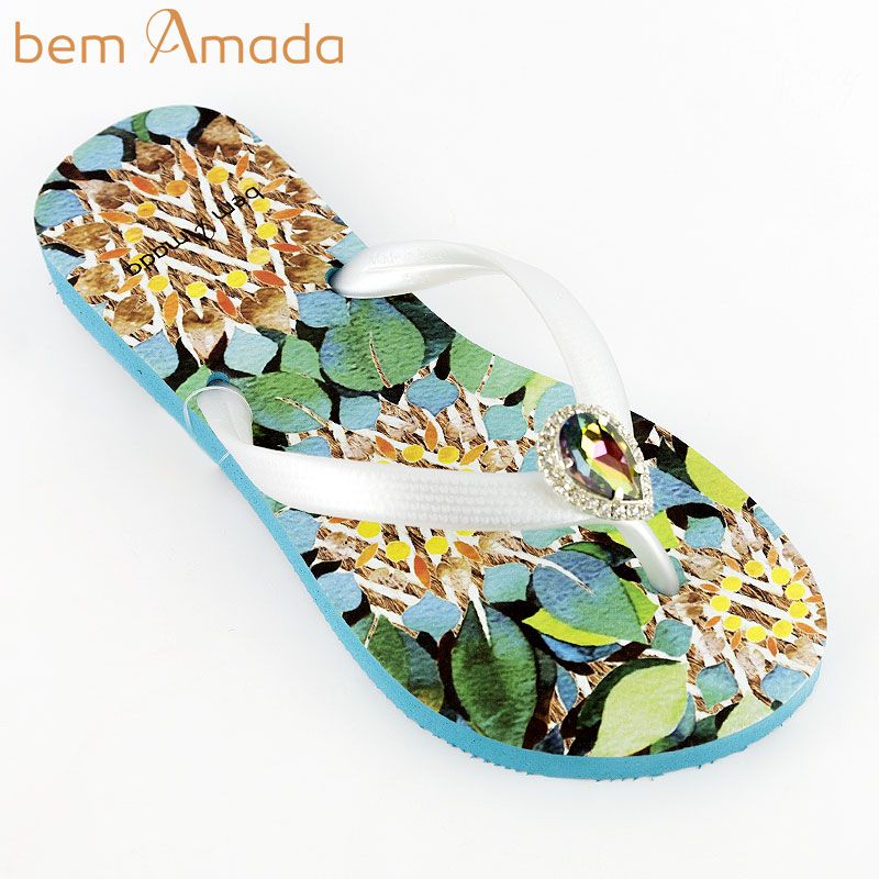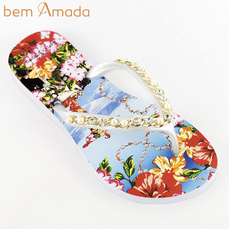 ビジュー付きビーチサンダル【bem Amada】花柄リオデジャネイロ CRISTO|ホワイト