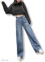 [kanaelun] [カナエルン] デニム レディース ワイド ゆったり ストレート ハイウエスト 腰高 足長 可愛い 着やせ 体型カバー