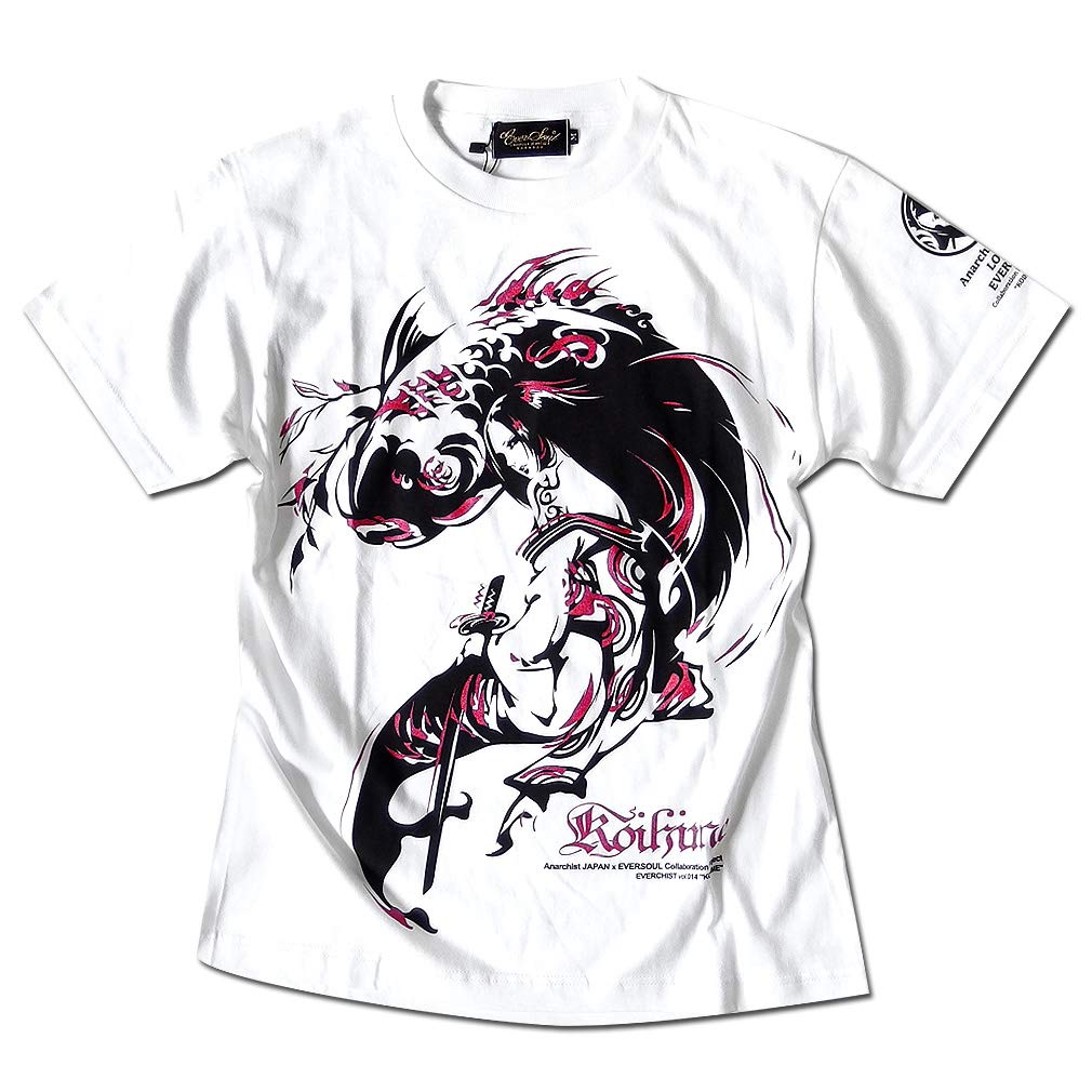 [EVERSOUL] エバーソウル Tシャツ 半袖 鯉姫 和柄 ガールプリント 女の子柄 キャラクター ラメ tシャツ Anarchist JAPAN メンズ ホワイト Mサイズ