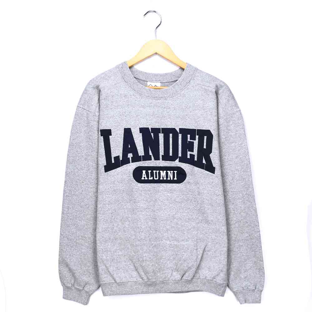 LANDER プリントスウェット サイズ表記 M グレー ALUMNI 長袖 カレッジ USA製 トレーナー The Cotton Exchange gray 灰 古着【中古】wv2005-1638
