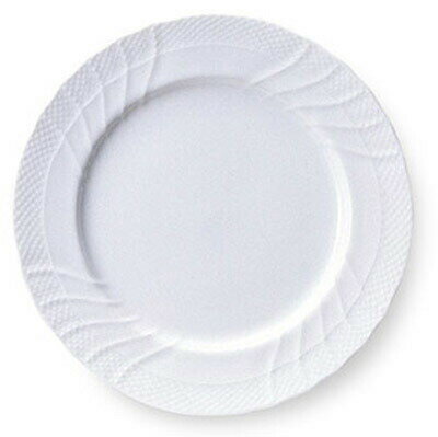 特白磁の白いミート皿。業務用にもぴったり。 直径23.9cm、高さ2.4cm。 電子レンジOK、食器洗浄機OK。 材質/磁器。日本製。 リム部分の拡大。 上品な波模様がまわりに施されています。アンジェ ミート皿<白い業務用食器>