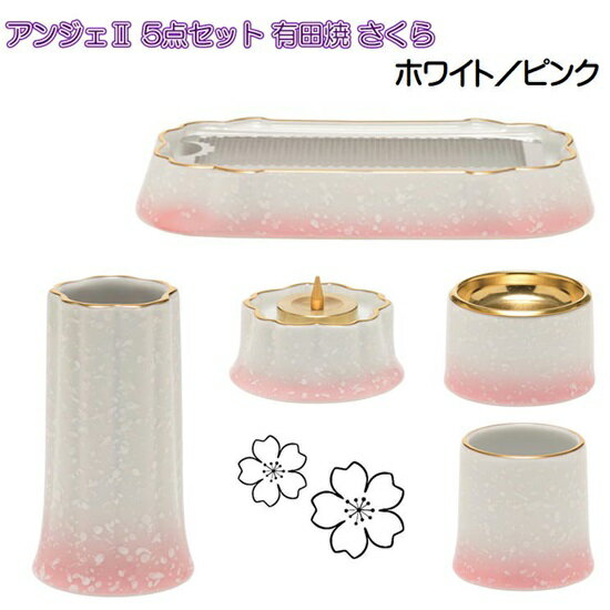 ANGERS(アンジェ)2 さくら 有田焼 仏具5点セット ホワイト/ピンク