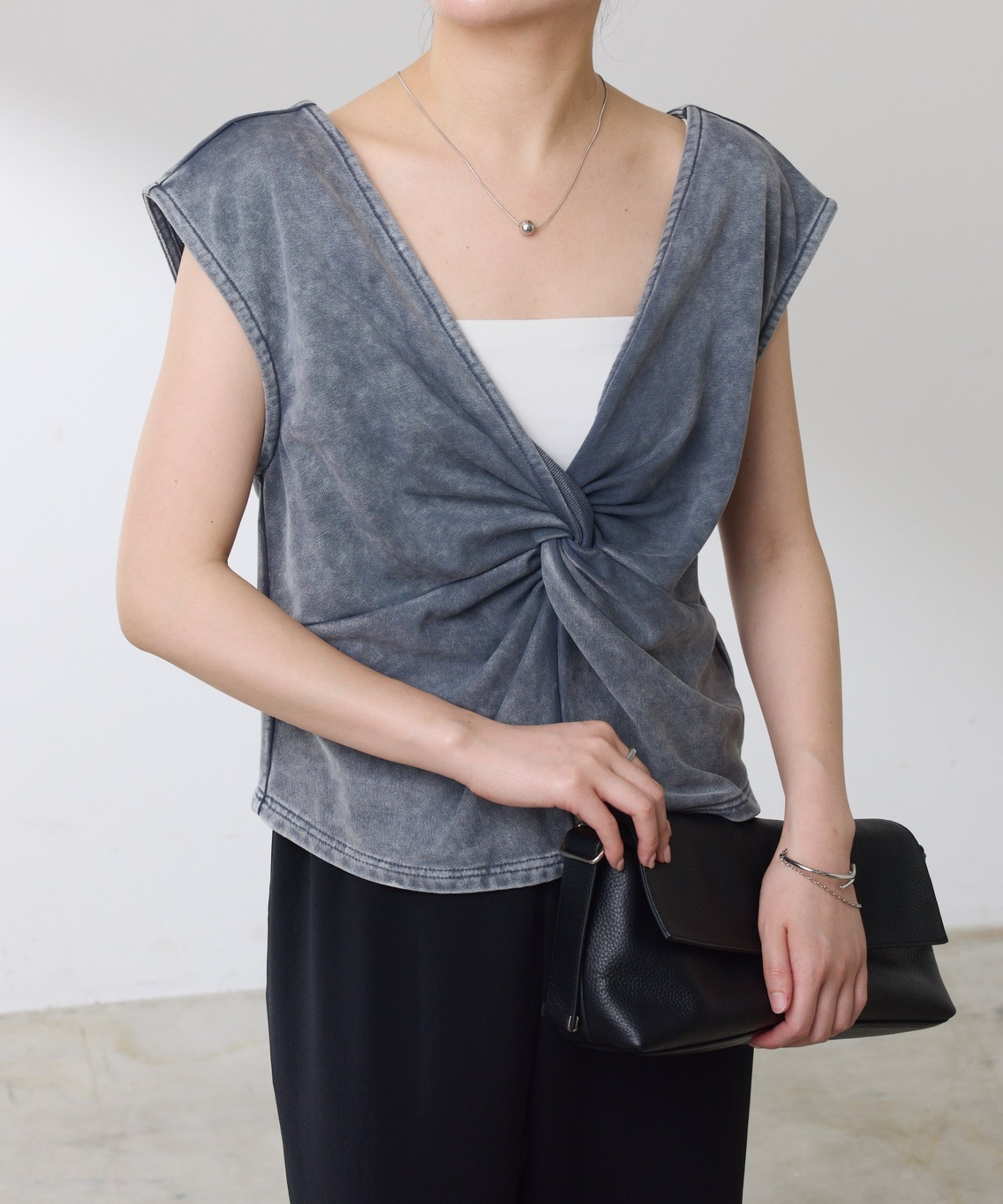 COLLAGE GALLARDAGALANTE Q.anos ツイストタンクトップ コラージュガリャルダガランテ トップス ノースリーブ・タンクトップ グレー ブルー【送料無料】