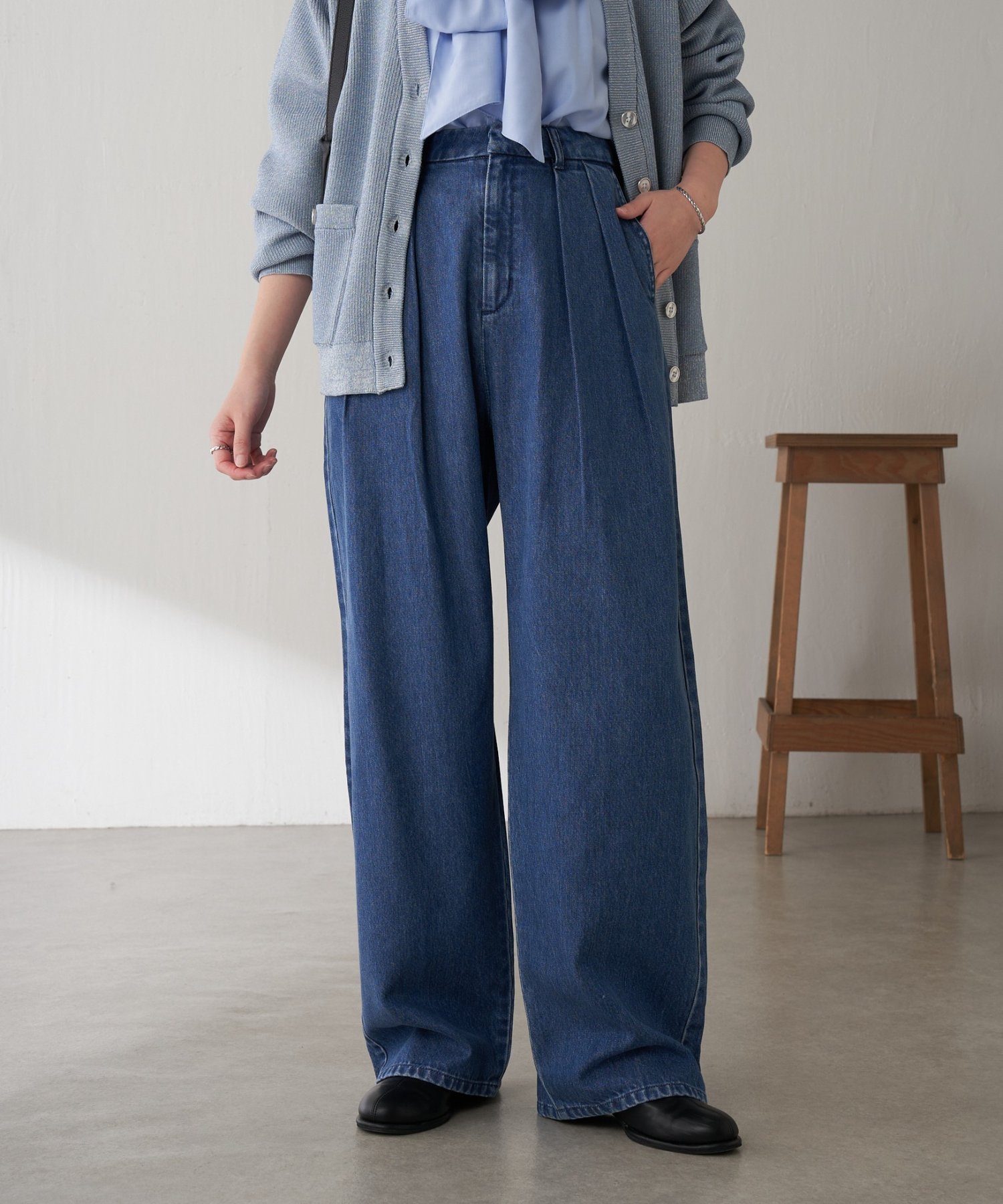 COLLAGE GALLARDAGALANTE 【身体のラインカバー】Q.anosチャームタックデニムパンツ コラージュガリャルダガランテ パンツ ジーンズ・デニムパンツ ベージュ ブルー【送料無料】