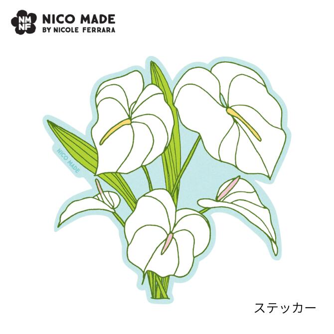 ニコメイド ステッカー Avery Bouquet (anthuriums)【NICO MADE ハワイ ハワイアン ブランド 人気 ロコブランド ステッカー アロハ サーフィン アンスリウム お花 フラワー ホワイトアンスリウム 白 雑貨 西海岸 イラスト】