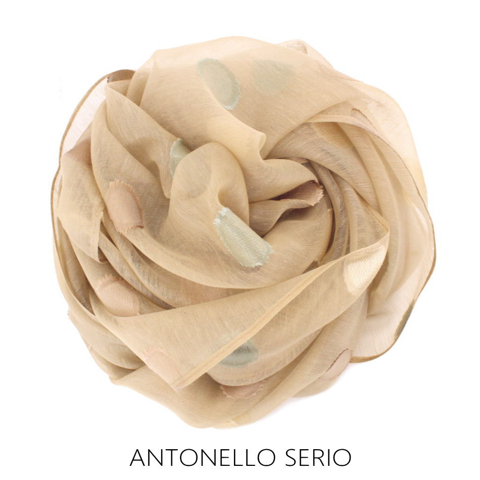 【ネコポス発送】【イタリア直輸入】【よりどり3個以上で各200円引き】イタリア ANTONELLO SERIO シルキー オーガンジーシフォン ドット柄 ジャガード 大判 ストール レディース UV対策 温度調節 01E56476