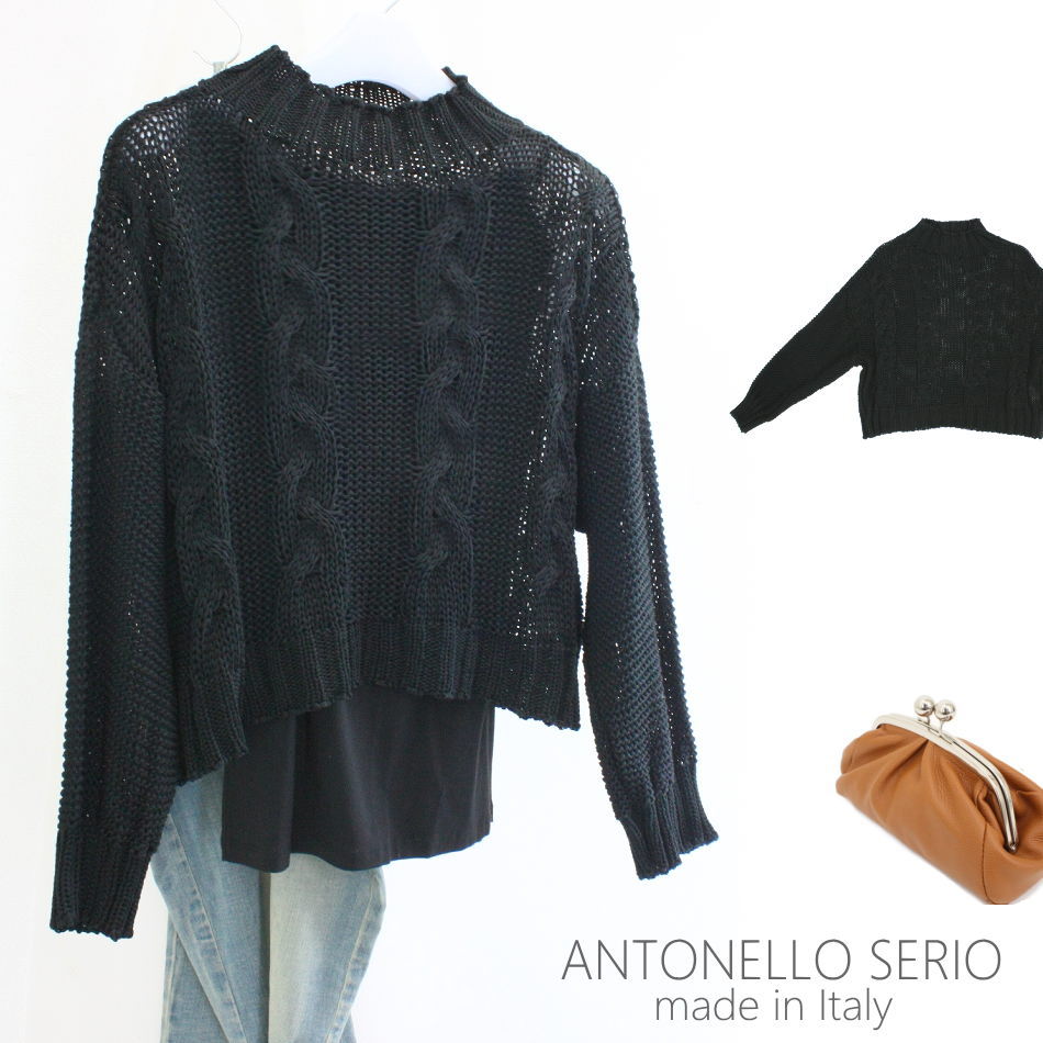 【イタリア製 ニット】【よりどり3個以上で各200円引き】イタリア製 レディース ニット イタリア ブランド ANTONELLO SERIO 縄編み ニット ハイネック セーター ドロップショルダー ルーズフィット プルオーバー サマーセーター ハイネック 11P56442【21B】