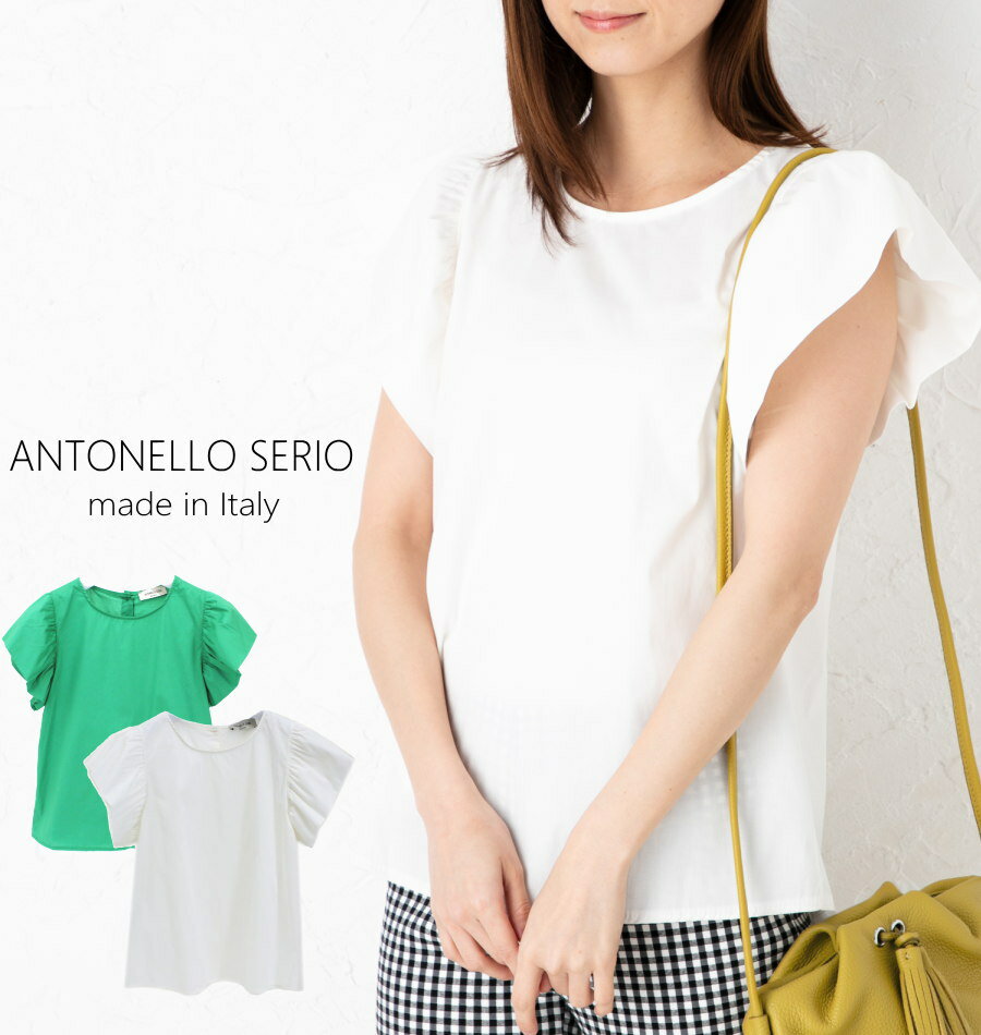 【ネコポス送料無料】【よりどり3個以上で各200円引き】イタリア製 コットン ブラウス イタリア ブランド ANTONELLO SERIO コットン ストレッチ オーバーブラウス ノースリーブ シャツ フリル袖 フレンチスリーブ レディース 真夏も涼しい 【21B】11P72078【MP】