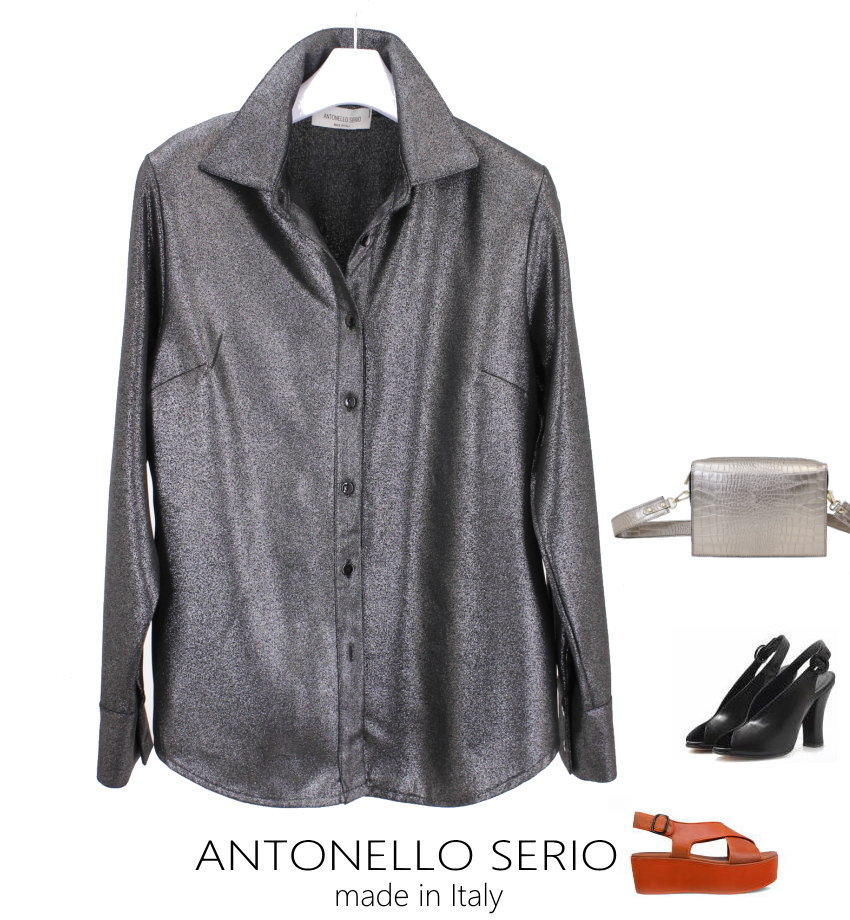【ネコポス送料無料】【イタリア直輸入】【よりどり3個以上で各200円引き】イタリア製ANTONELLO SERIO ジョーゼットジャージー ラメ ブルーザ シャツ ブラウス 【20A】92P83214