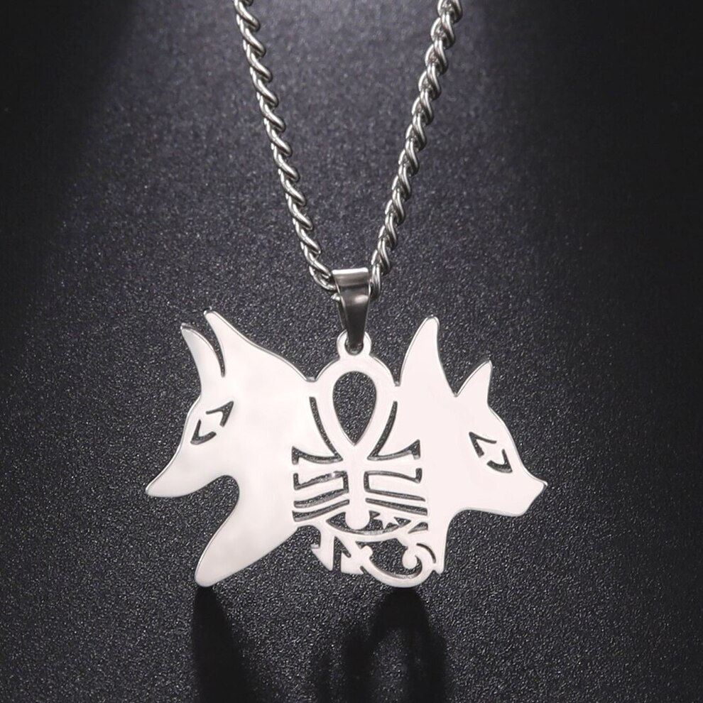 【クーポン利用で2810円】 ペンダント ネックレス エジプト 神話 ステンレス 古代 ジュエリー ビンテージ ギフト メンズ 男性 スタイル パンク ロック タグ 私 O Y 古代エジプト神話 アヌビス 王 シルバー かっこいい 小豆 あずき チェーン