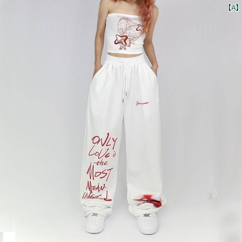 ダンス衣装 セットアップ ワイドパンツ アメリカン ヒップ ホップ 綿 ストレート スポーツ パンツ ハイウエスト ゆったり ワイド レッグ ジャズ ダンス