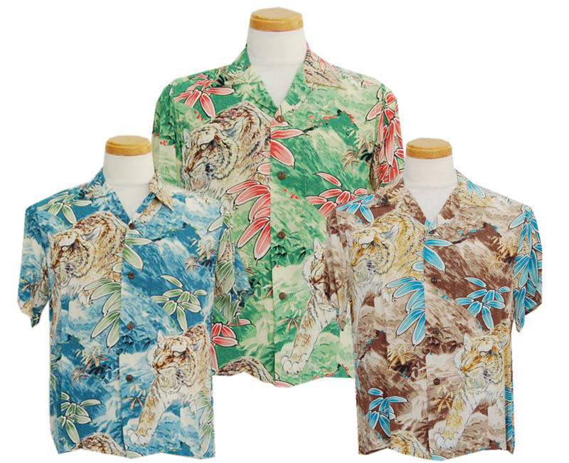 品番 SS32718_S/S 価格 9,800円(税抜) 素材 レーヨン壁チリメン 社名 東洋エンタープライズ 株式会社 ブランド SUN SURF (サンサーフ)SUN SURF (サンサーフ) ハワイアンシャツ(半袖) SUN SURF (サンサーフ) ハワイアンシャツ(半袖) SS32718_S/S : 2006 SunSurf サンサーフ SS32718 TIGER ESCAPES アロハシャツのサンサーフ[SUNSURF]からお届けするこの商品は過去にも一度サンサーフよりレプリカしたことが有ります、今回はオリジナル色のGREENを含めBLUEなどのパステル色がすごく綺麗だと思います。ホノルルのダウンタウンにあった日系のショップ・ブランド・リッツの作品です、岩山を徘徊する虎の柄を緻密に描きそこに笹の葉でアクセントをつけています、40年代後期に描かれたこのデザインはその後数度にわたり多くのメーカーに描き直されています久しぶりにサンサーフからのレプリカですので今後はこの柄に関しては再生産はないのではないでしょうか