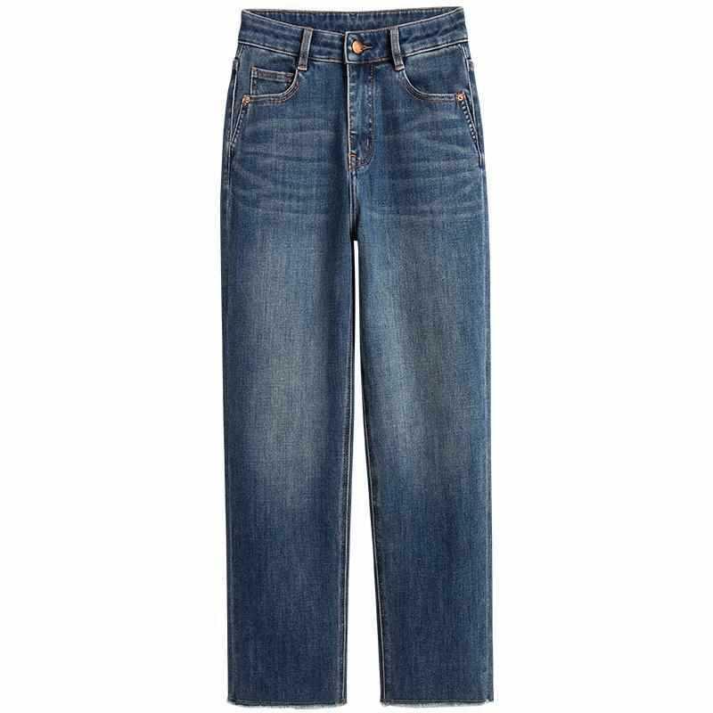 デニム レディース ハイウエスト ストレート 伸縮性 ジーンズ ジーパン ゆったり 9分丈 バギーパンツ 薄手 春夏 秋冬 ズボン