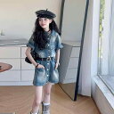 ワンピース ガールズ デニム 春夏 子供服 カジュアル デニムスカート ブルー ウエストベルト付き 中大 キッズ 120cm 130cm 140cm 150cm 160cm 170cm