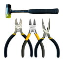 切断 工具セット:127mmラジオペンチx1、127mm薄刃ニッパーx1、127mm強力ニッパーx1、Ø25mmゴムハンマーx1。 高炭素鋼製で、高周波硬化処理を施し、優れた靭性、大きなトルク、高硬度、強力な耐衝撃性実現しております。 グリップは滑り止めの仕上げで、小型で繊細な作業に便利です。 家庭の内装工事、自働車修理、電子機器のメンテナンスなどの作業、ワイヤの切断、ねじの締付などに適して、縁飾り、生け花のDIY道具としても広く使用されています。 ツールセットは電気技師、建築家、エンジニア、修理工、職人に最適です。ガレージ、ワークショップ、オフィス、建設現場などで幅広く使用できます。
