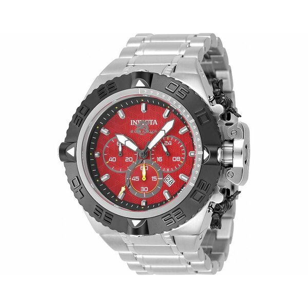 インビクタ メンズ 腕時計 アクセサリー Men's 48199 Subaqua Quartz Chronograph Red, Black Dial Watch Silver