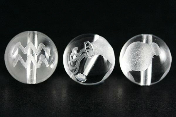 星座 彫刻ビーズ 水晶みずがめ座 水瓶座 AQUARIUS 10mm玉 1粒 売り ロッククリスタル 天然石 お守り ハンドメイド 手作り アクセサリー パーツ パワーストーン