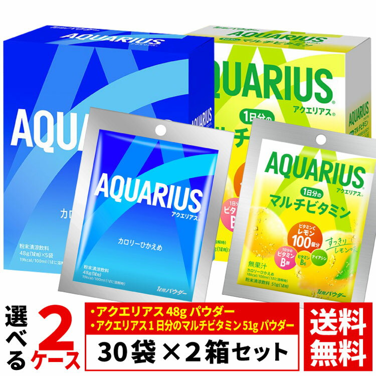 【よりどり選べる 2ケース】アクエリアス パウダー 30袋 ×2箱 合計 60袋 アクエリアス 48gパウダー 5袋×6箱(30袋入)1日分のマルチビタミン 51gパウダー 5袋×6箱(30袋入)送料無料(沖縄宛は別途送料2,000円)※着日指定・代引不可※