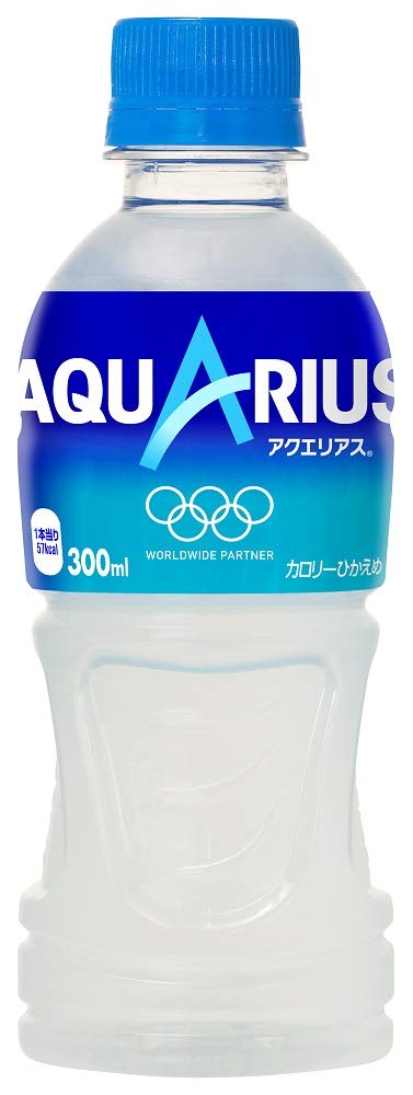 アクエリアス PET 300mlアクエリアスらしいブルーのグラデーション”A“のシンボルを強調したデザインにリニューアル。原材料:果糖ぶどう糖液糖(国内製造)、食塩/クエン酸、香料、クエン酸Na、塩化K、硫酸Mg、乳酸Ca、酸化防止剤(ビタミンC)、甘味料(スクラロース)、イソロイシン、バリン、ロイシン栄養成分(100ml当り):エネルギー 19kcal、たんぱく質 0g、脂質 0g、炭水化物4.7g、食塩相当量 0.1g、カリウム8mg、マグネシウム1.2mg、イソロイシン1mg、パリン1mg、ロイシン0.5mg賞味期限:メーカー製造日より8ヶ月