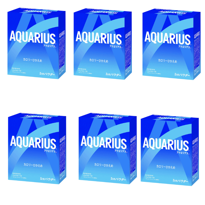 ■水とミネラルを同時に失う動くカラダの水分補給。 アクエリアスは、水だけでは足りないミネラルを配合。動くカラダをサポートします。 ■動くカラダサポート成分配合。 汗で失われるミネラルをはじめ、動くカラダに必要なアミノ酸、クエン酸を配合。 カラダを動かすあらゆるシーンで、サポートします。 【品名】粉末清涼飲料 【原材料名】 糖類(砂糖(国内製造)、ぶどう糖)、塩化Na/クエン酸、クエン酸Na、香料、アルギニン、塩化K、甘味料(アセスルファムK、スクラロース)、硫酸Mg、乳酸Ca、酸化防止剤(ビタミンC)、イソロイシン、バリン、ロイシン 【内容量】240g(48g×5袋)×6個(30袋) 【栄養成分表示】1袋(粉末48g)当たり ・エネルギー186kcal ・たんぱく質0.5g ・脂質0g ・炭水化物46g ・食塩相当量1.0g ・カリウム100mg ・アルギニン267mg ・イソロイシン10mg ・バリン10mg ・ロイシン5mg 【賞味期限2026.11以降】 ※北海道・東北・信越・沖縄・離島は追加送料あり※■こちらの商品は送料無料6個セットです。※北海道・東北・信越・沖縄・離島は追加送料あり※