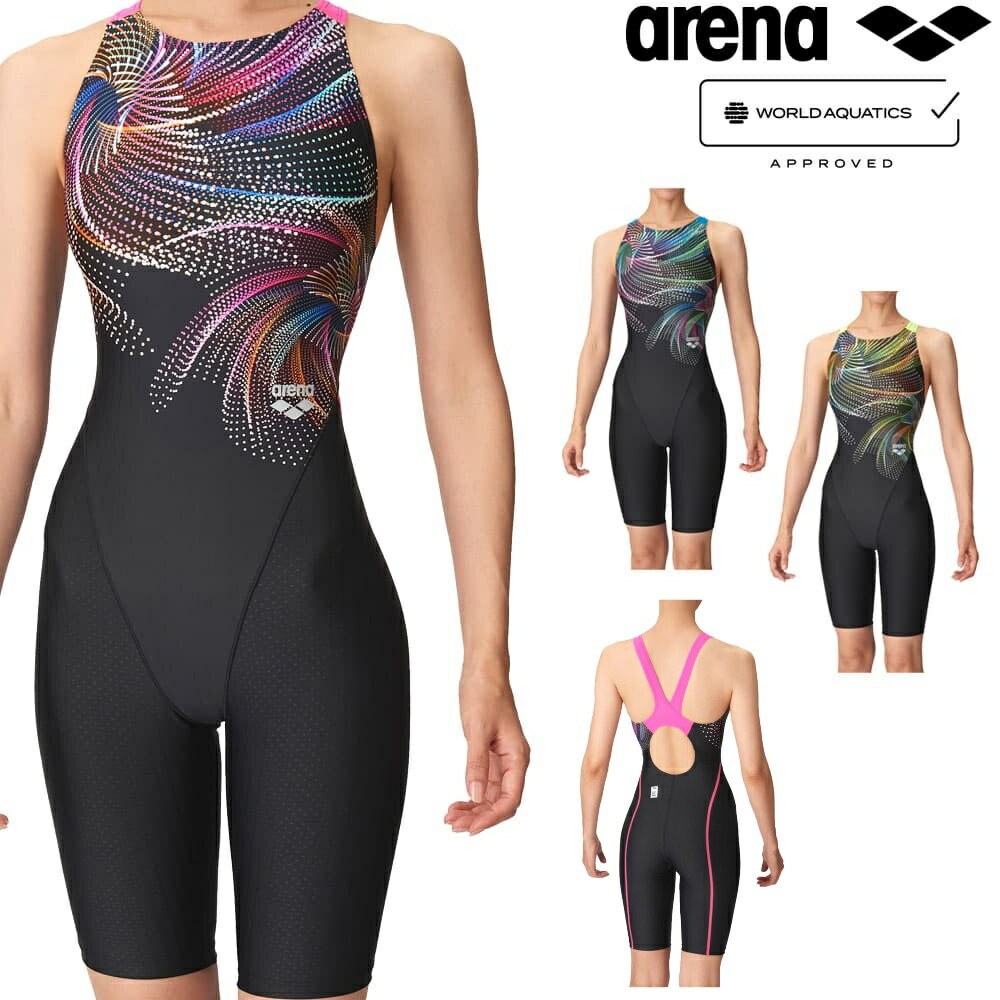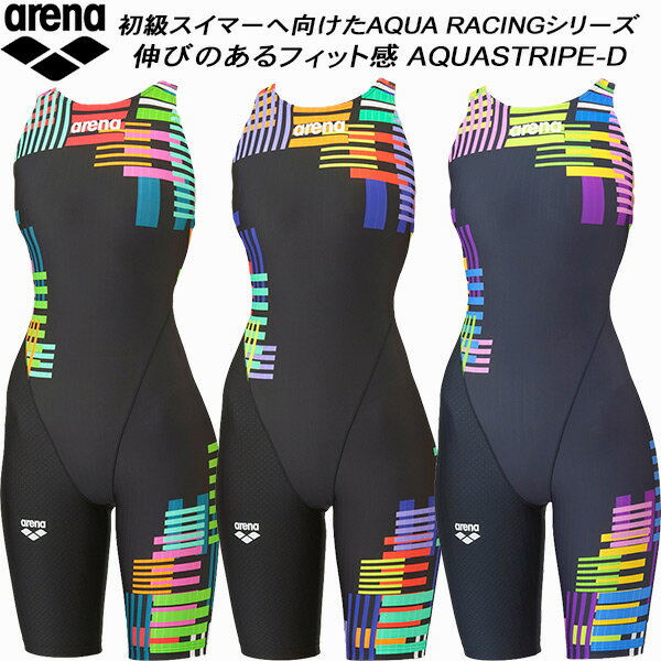 【全品ポイント3倍+最大2000円OFFクーポン】アリーナ arena レディース 競泳水着 WA承認 ハーフスパッツ オープンバック 着やストラップ AQUA STRIPE-D AS5FRC63L