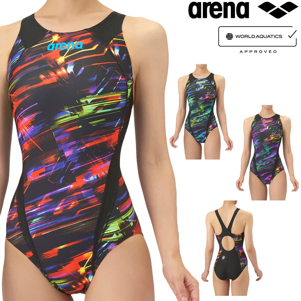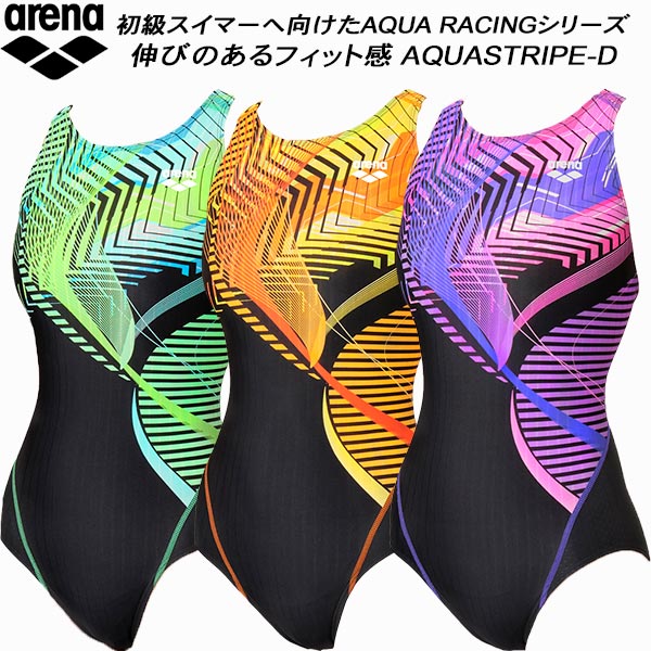 【店内商品3点以上でさらに3%OFFクーポン配布中】アリーナ ARENA 競泳水着 レディース WA承認モデル セイフリーバック 着やストラップ AQUA RACING AQUA STRIPE-D ARN-2051W fina マーク あり
