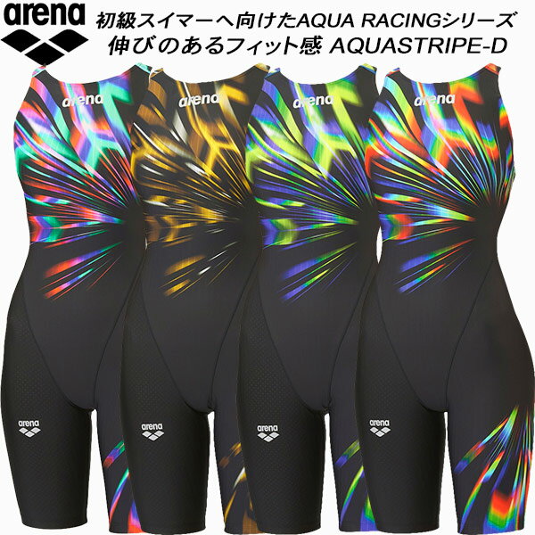 【全品ポイント3倍+最大2000円OFFクーポン】アリーナ arena レディース 競泳水着 WA承認 ハーフスパッツ AQUA STRIPE-D 着やストラップ AS5SRC60L