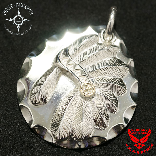 ポイント2倍!!ファーストアローズ War bonnet横顔付きメタル 35Φサイズ ペンダントトップ FIRST ARROWS p-701