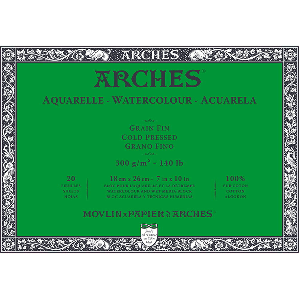 【1冊までメール便OK】ARCHES アルシュ 水彩紙 ブロック 300g/m2『コールドプレス』細目(ファン)20枚 180×260mm アルシュブロック【お取り寄せ品】