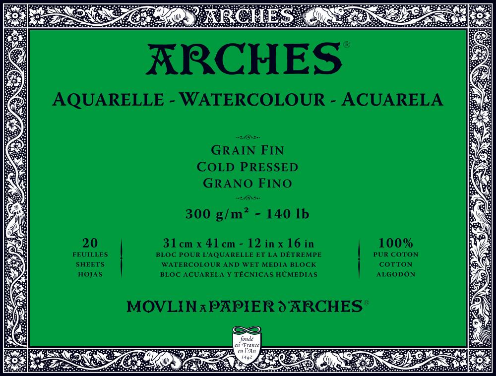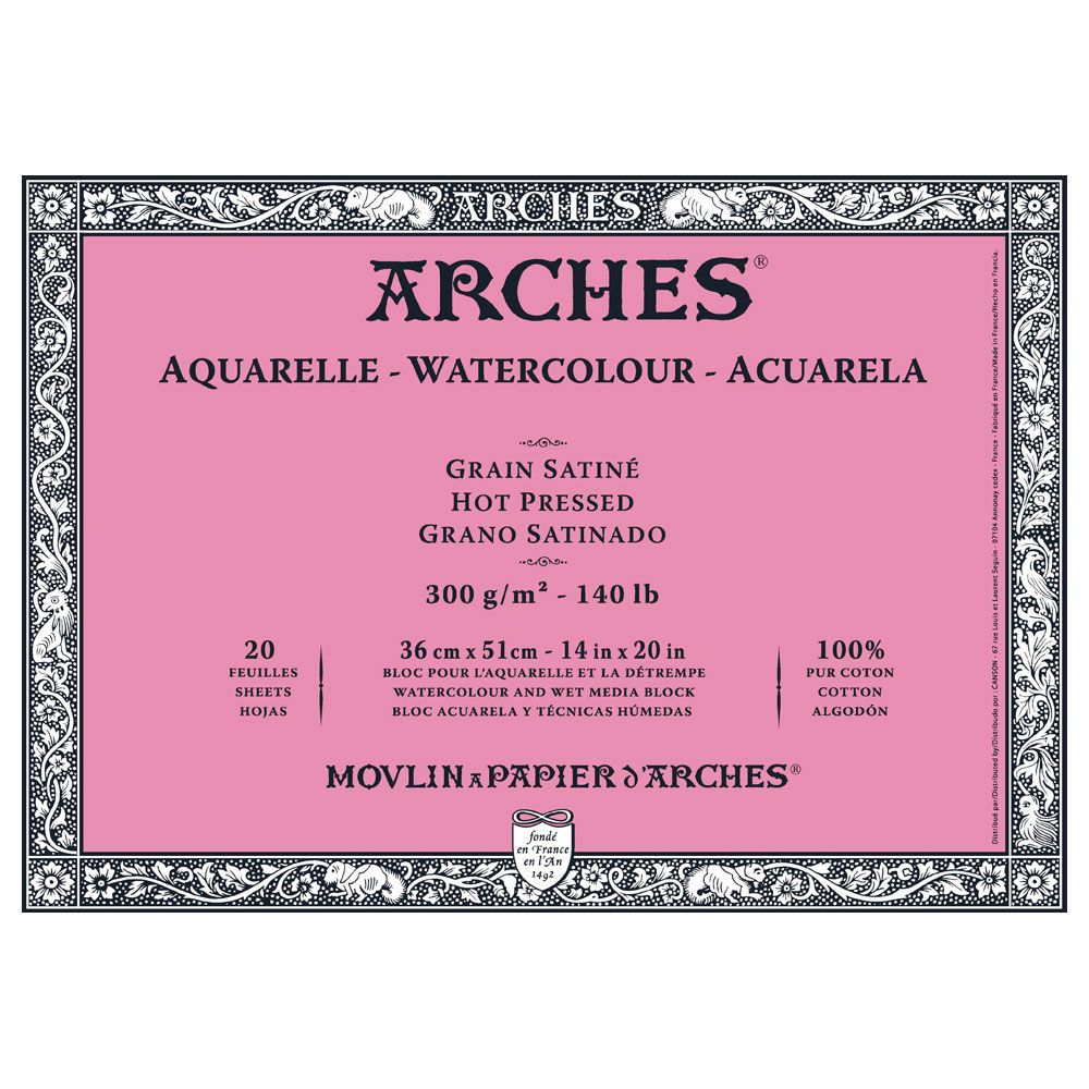 【送料無料】【お取り寄せ品】アルシュ ブロック 300g/m2 (F10)極細目(サチネ)20枚 460×610mm アルシュブロック ARCHES 水彩紙