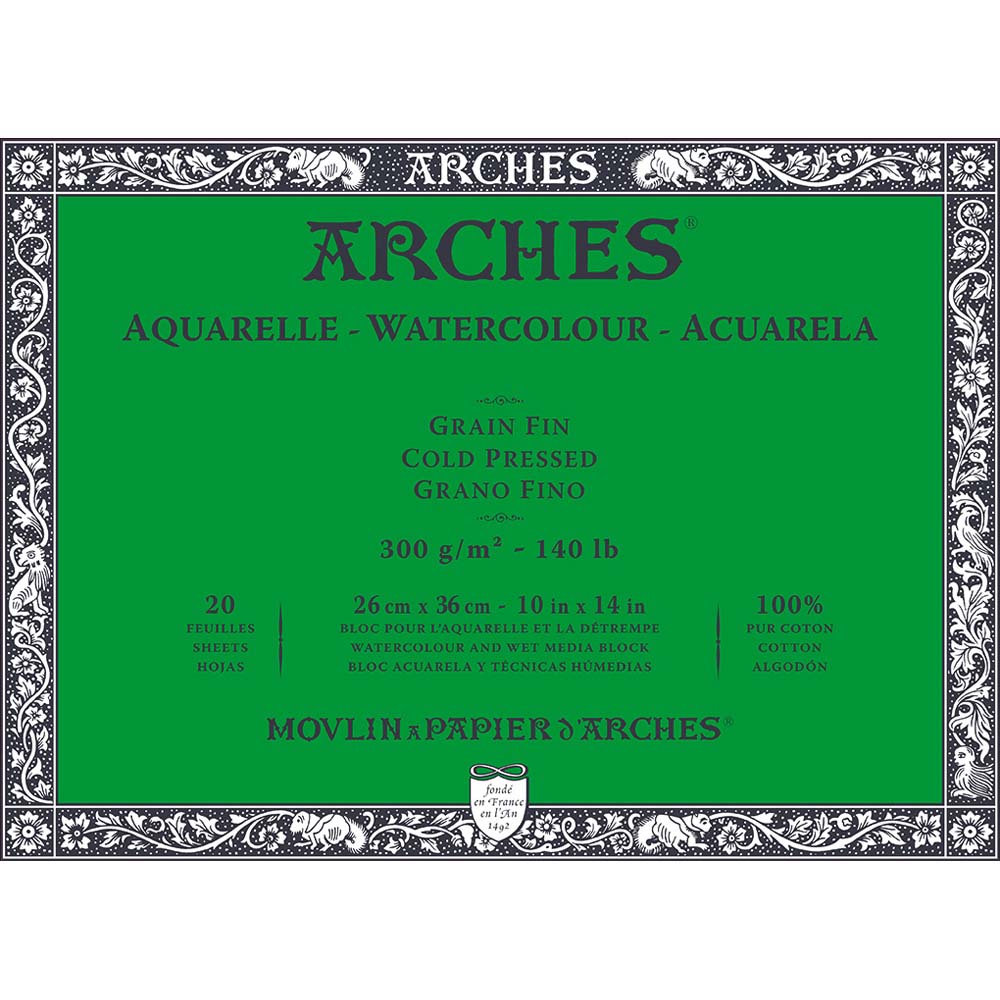 【お取り寄せ品】ARCHES アルシュ 水彩紙 ブロック 300g/m2コールドプレス 細目(ファン)20枚 260×360mm アルシュブロック