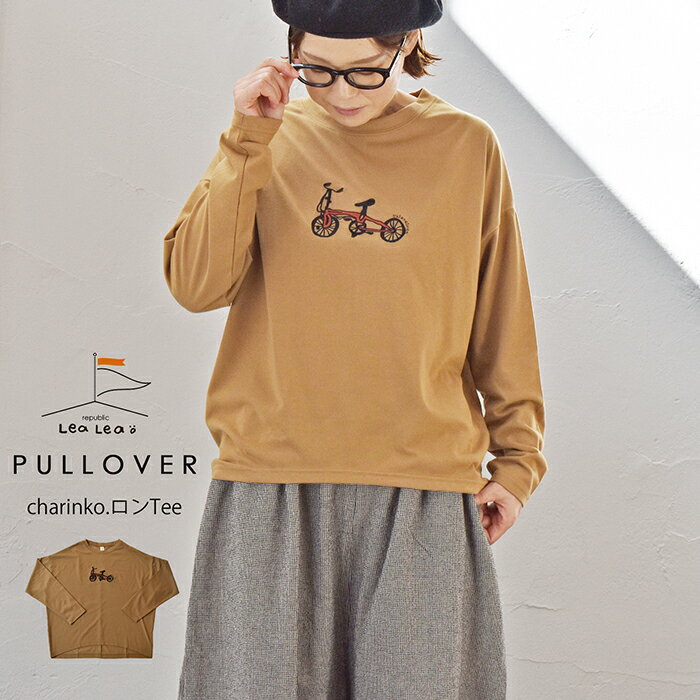 343340 charinko.ロンTeeレディ―ス トップス カジュアル 刺繍 刺繍T ロンT シンプル 長袖 秋冬 カジュアル