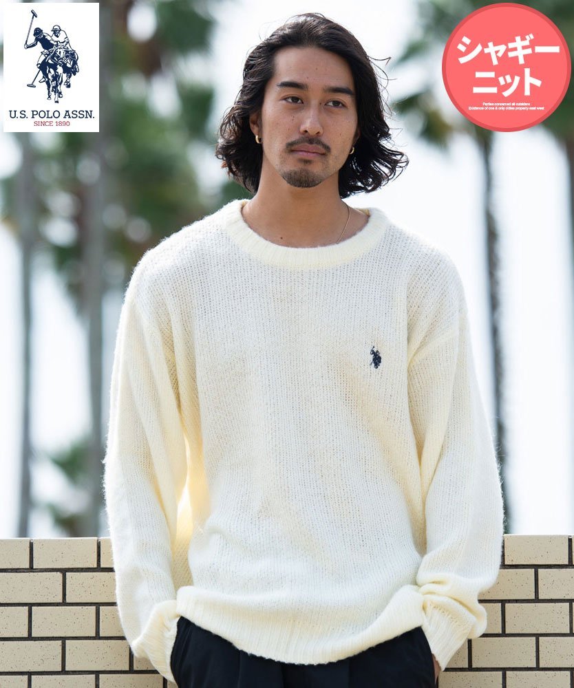 【SALE/5%OFF】SB select U.S. POLO ASSN. 5G畦甘編みシャギークルー長袖ニット シルバーバレット トップス ニット ベージュ ネイビー ホワイト【送料無料】