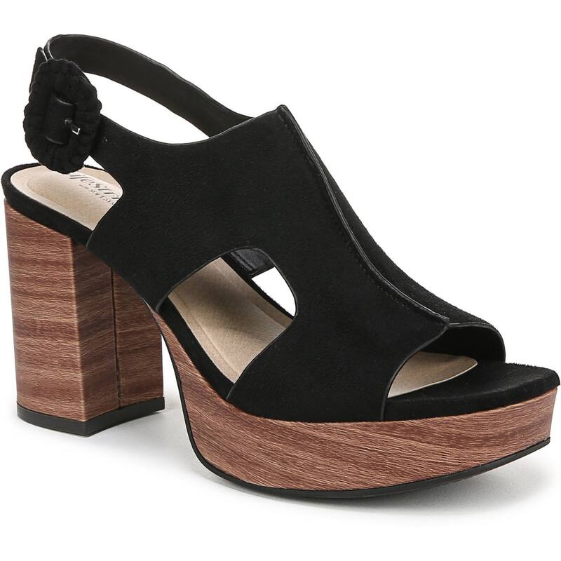 ライフストライド レディース サンダル シューズ Women's Audra Open Square Toe Block Heel Platform Sandals Black Microsuede