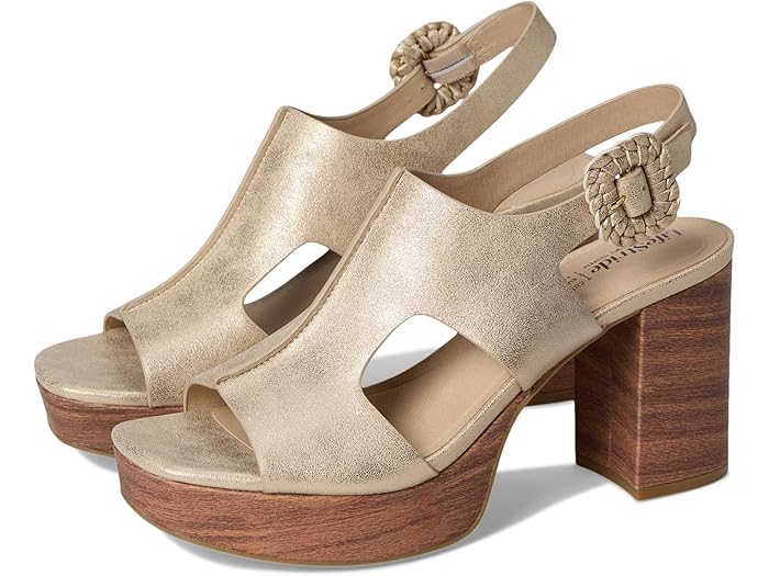 ライフストライド レディース サンダル シューズ Women's Audra Open Square Toe Block Heel Platform Sandals Gold Faux Leather