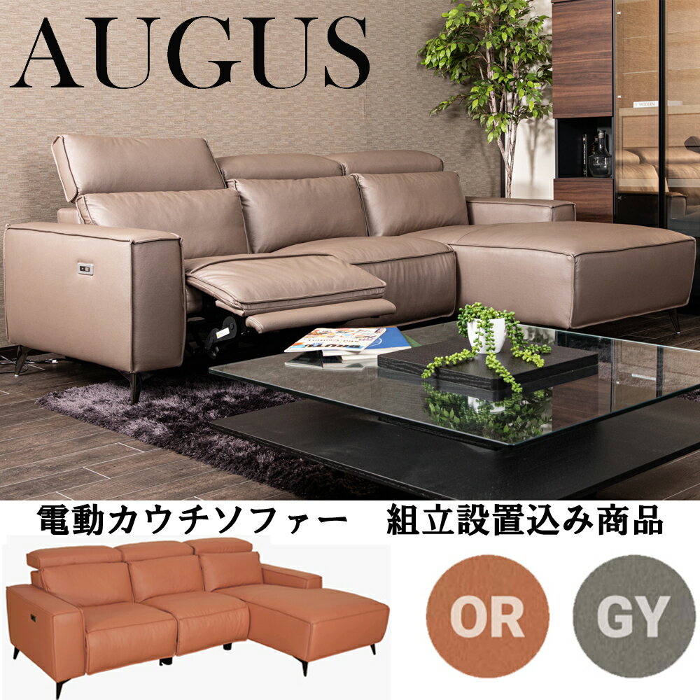 【組立設置込み商品】電動リクライニング ソファ Augus オーガス 電動ソファー レザー調布張りリビングソファー リクライニング カウチソファ 2人掛け 3人掛け ゼロウォール USB フットレスト ヘッドレスト モダン リビング
